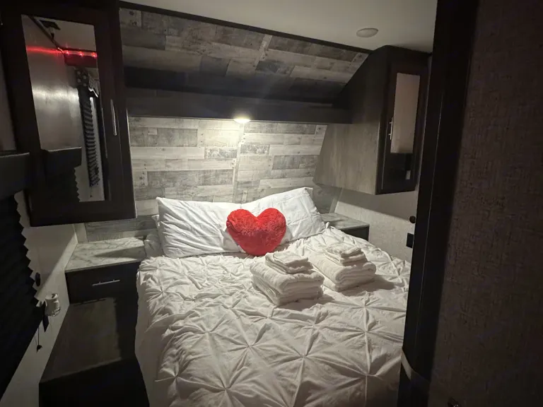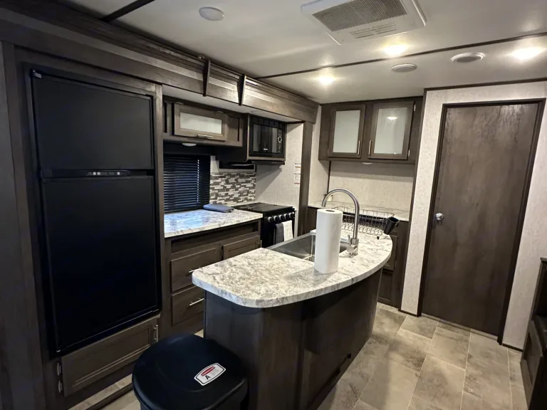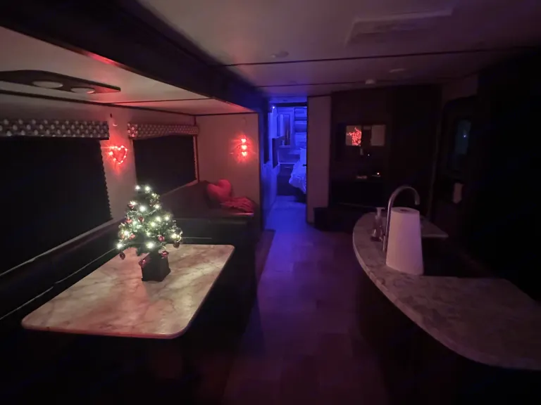 We used this for extra beds when family was in town for Thanksgiving and it worked perfectly for what we needed it for. This is a large trailer with a rear bunk room and a large kitchen and living area.