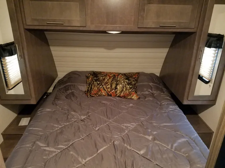 Our wonderful camper has large master bedroom and bath. It also has a large bunkhouse with private 1/2 bath and second entrance. There is a full outside kitchen with gas grill and cooktop. We will deliver to your destination.