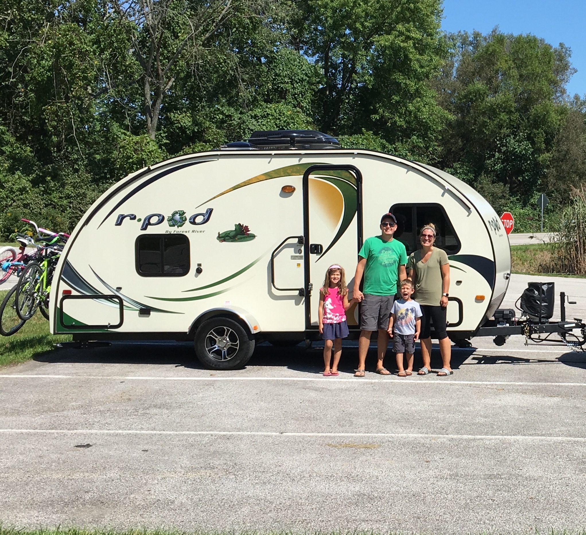 Hello, my name is Aaron and my wife's name is Lauren. Along with our two young kids, we love to camp. It is really important to us to spend quality time together, away from technology and noise. So, we invested in a very cozy R-POD. If you've never seen an R-POD, they are very unique, so check it out! We mostly camp locally at Roundup Lake, Westbranch, and Punderson, but have also taken our R-POD all the way to Washington DC! Not wanting it to sit unused, we decided to list on RVshare and share our little mobile home with you! Besides camping, we love CLEVELAND sports and enjoy spending time at our family condo up on Lake Erie. God bless and enjoy!
