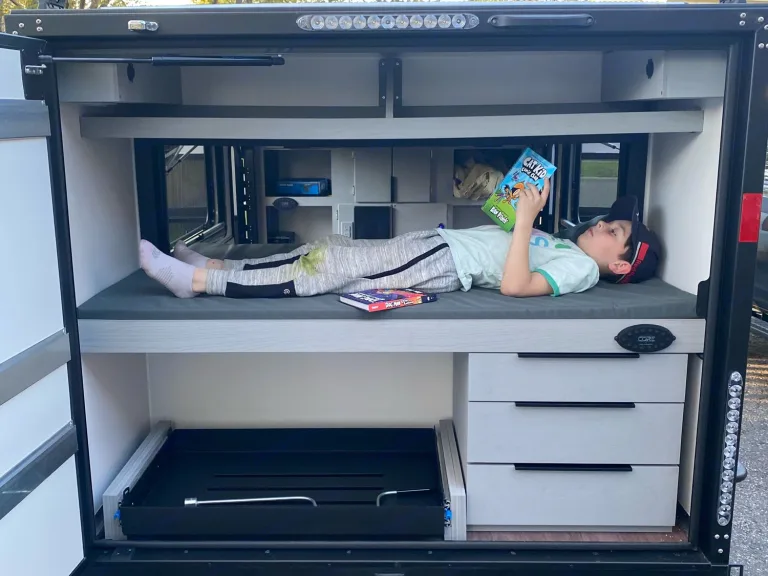 Get out and enjoy the great outdoors in our 2021 Escapade - MT-10 Overland Camper. Easy to Haul, Easy to Pack and you still feel like your tent camping but you are always going to wake up dry, rested and ready to explore the next day.What's includedTrailer, Extension Cord, 2 - 7 gallon water tanks, towing receiver with sway bar connection.RecommendationsA perfect rig to drive to your local camp ground, check out a new state park, head out on a road trip or even Boondock your way across the country.Other things to noteNo Smoking in or around camper.