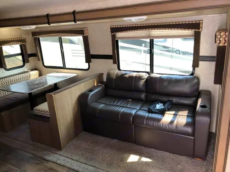 When we realized that missing out on making plenty of big family memories with our kids wasn't a regret we were willing to have, we decided to venture into the world of rv'ing and have loved it so much! Our 3 littles are always asking, "when are we going camping again?" Then, we realized we could help that dream become a reality for others by renting our camper through Outdoorsy.Our 2015 Cruiser "Shadow Cruiser" is 32' with 1 big slide out. Features include an over-sized dinette, spacious living room/kitchen/dining area, entertainment center (with TV that flips around for viewing in the master bedroom, queen master bed, sofa bed, dinette that converts to a full bed, nice sized refrigerator/freezer, spacious pantry cabinets, gas oven with 3 burner stoveand rear bunk room with Four (4) bunks (and one of the bottom bunks converts to a 2 person, mini dinette).