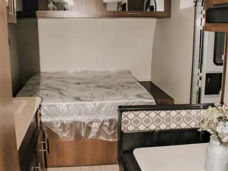Cozy little camper for an individual or couple looking for a getaway. Queen bed, and the dinette converts if you have little ones traveling with you. Dishes, cooking supplies, and coffee maker are provided. Renter Must provide linens. Evidence of linens not being used will result in a deduction from renter's deposit.Furnace has been replaced with an electric fireplace, so power IS required to provide heat. This is a result of parts backorder in the manufacturer's behalf and gas heat will be reinstalled as soon as possible.