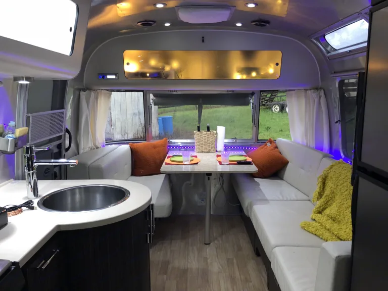 A modern coach with indoor outdoor feel, off-grid amenities with 4 solar panels, 2 Tv's and premium sound system. All the comforts of home, with a luxurious modern flair.