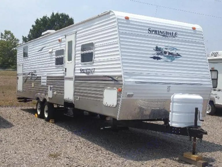 This is a gently used and smoke-free 2006 Keystone Springdale RV model 298Bhlgl that can comfortable sleep two adults and up to six young adults or children with one full slide-out for the dining table and sofa area. Private bathroom with tub, shower, sink, toilet and vanity. New AC System installed in 2016. Microwave. Medium size refrigerator with small top freezer. The oven and stove top are gas powered for cooking. Additional deposit may be required for use of gas powered appliances. Rental includes tow hitch, two torsion bars and one anti-sway bar. Your tow vehicle must be rated to pull this RV. I will show you how to connect, adjust and disconnect as necessary.Specs: 10.0 cu. ft. Refrigerator, 10 gallon water heater, Gas/Elec. w/DSI, AM/FM/CD Stereo, CD Player (Multiple), Stabilizer Jacks (Crank Down), Scissor Stabilizer Jacks, Outside Shower, Power Slide-Out 14' and Skylights throughout. RV Length = 32'8" Width = 8'0" Height = 11'1" Hitch Weight = 705 lbs Dry Weight = 6,500 lbs Cargo Weight = 3,005 lbs Fresh Water Capacity = 50 gals Grey Water Capacity = 32 gals Black Water Capacity = 32 gals Sleeps = 10 Tire Size = ST225/75D15 Slides = 1 Features and Options: Single Slide, Rear Bunkhouse w/2 Sets of Bunks plus full Wardrobe Between, Outdoor Storage, Booth Dinette & Sofa Bed Slide-out, Tub/Shower, Toilet, 3 Burner Range, Double Kitchen Sink, Entertainment Center, Front Queen Bed + two Nightstands & two Closets.