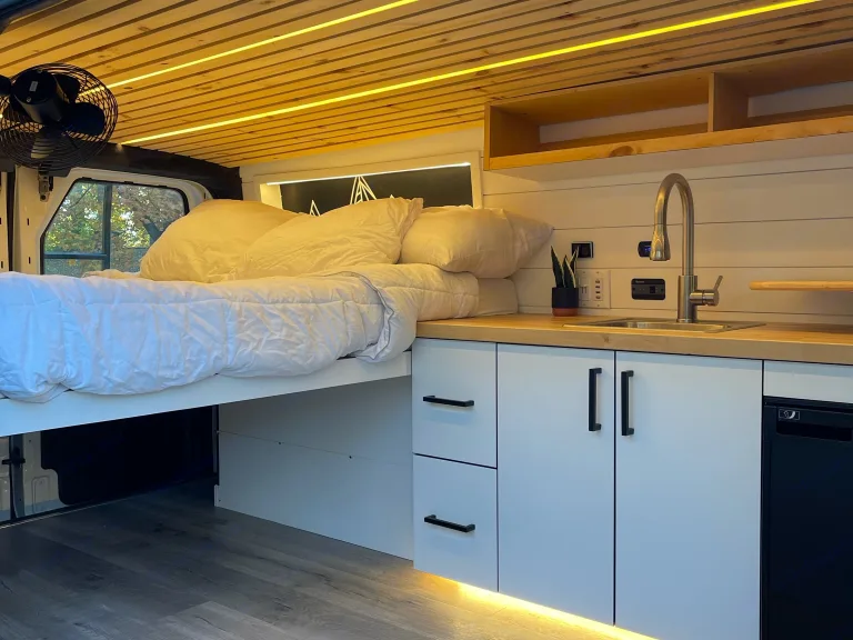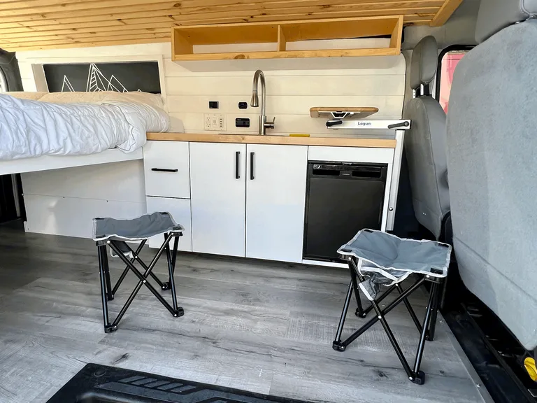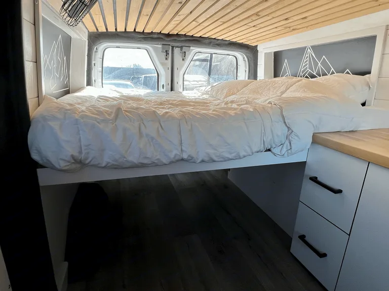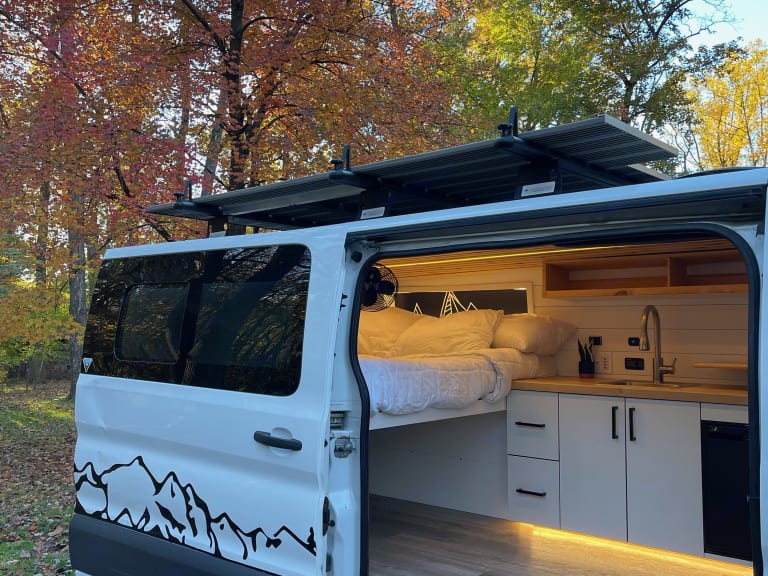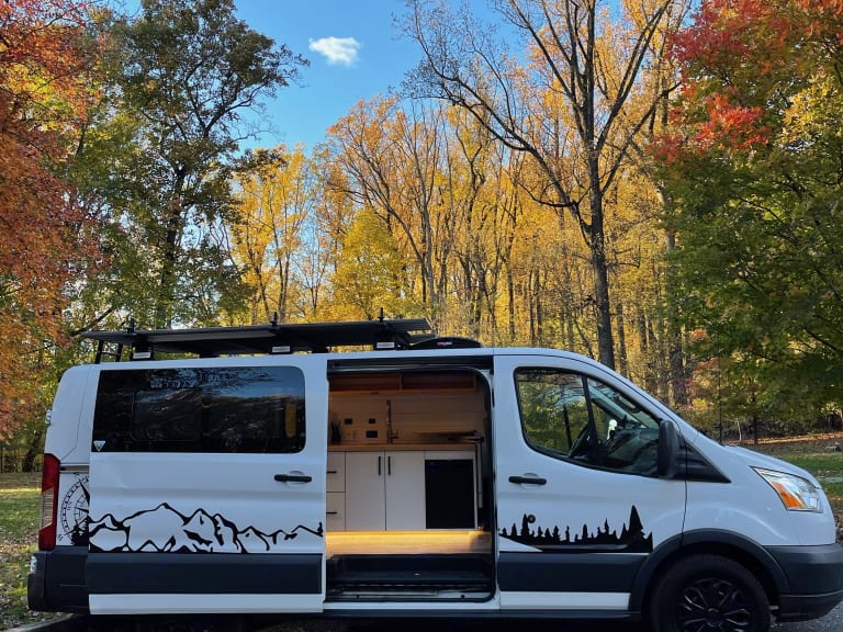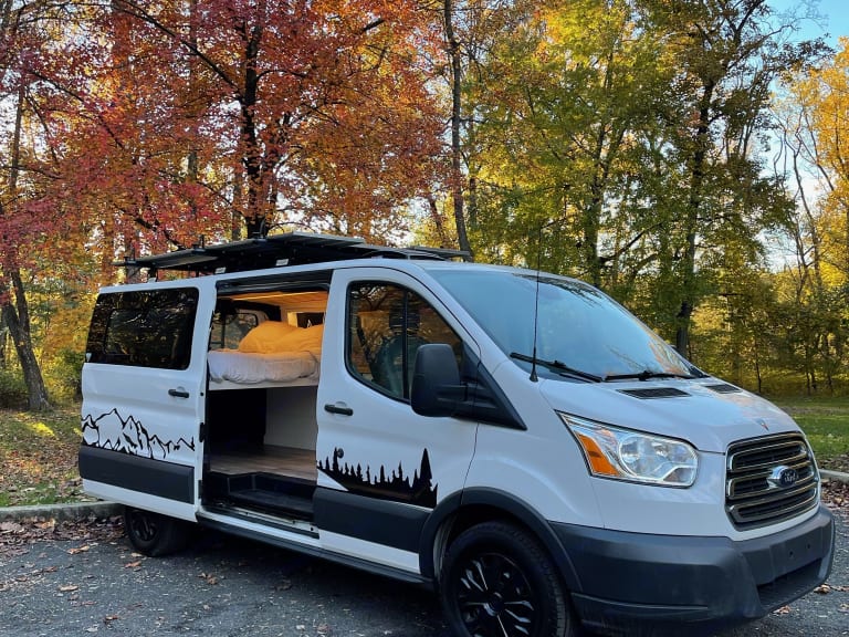 This Vanture Customs Compass Build out is the perfect vehicle for you next adventurer! This is 2016 Ford Transit Van, that was professionally converted by Philadelphia's own, Vanture Customs Conversion Company!Check out our YouTube video for a full tour of the van!Fully equipped with an extremely comfortable memory foam bed, sink, induction stove, ventilation and heater!Open storage under the bed allows for you to bring whatever adventurer gear you would like for your next big excursion! What's includedRoof deck, swivel seats, LED strip lights, Lagun Table, pots and pans, butane cooktop, open storage area under the bed for camping/ outdoor gear, overhead cabinets, 110v outlet, USB ports, RV Rental Guide, One-pot recipe cookbook, and window covers! RecommendationsThe Pocono Mountains