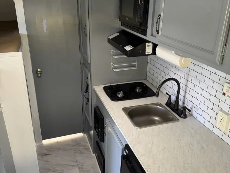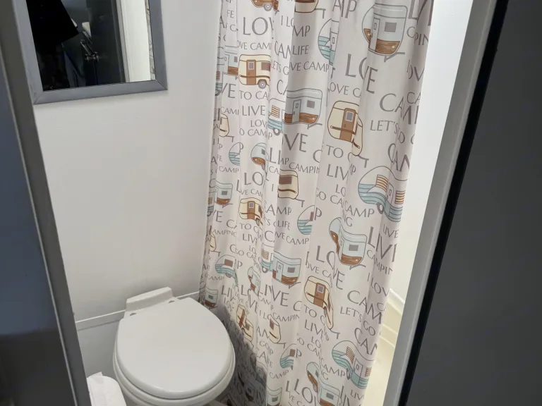 Enjoy full kitchen, bathroom with shower/tub, plus comfy queen and bunks.
