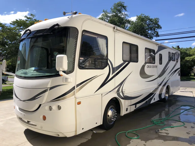 38 foot diesel pusher with 2 slides. Queen masterbed. Pull out couch. Table converts to bed as well. 2 TVs. Propane. New Tires and batteries. 50 amp. 2 AC/Heat. My kids love camping in it. They call it the smiling RV:)