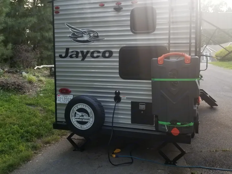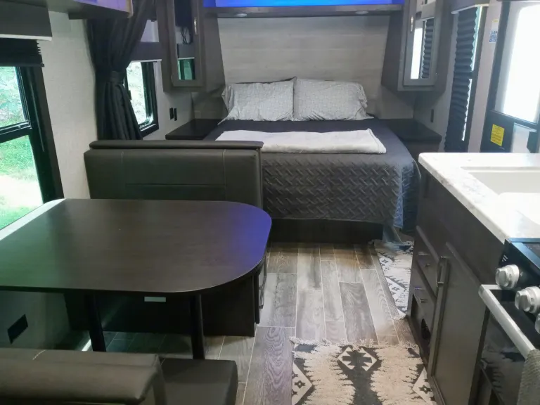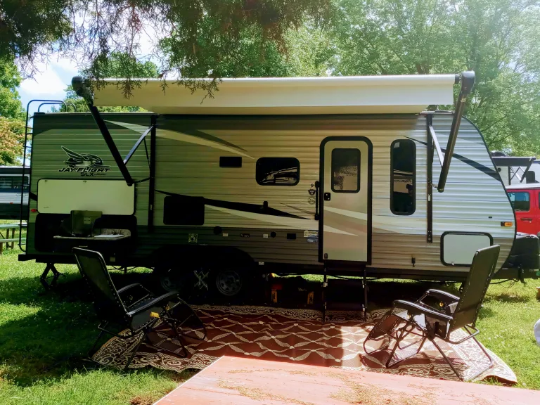 2021Jayco BH TT with a nice outdoor kitchen with 2 burner stove and sink (cast iron griddle included). Sleeps 7 comfortably- with a double over double bunk bed. Great for an average sized family. Light and easy to tow with weight distribution hitch included (2" receiver with 7 pin connector required). Just pack up your food, clothes, and toiletries, and enjoy! Comes with fresh linen, TP, broom, disinfecting wipes, grill/cooking tools, pots/pans, plasticware, paper plates, plastic cups, Keurig coffee maker, coffee mugs, an outdoor carpet, rear camera, flashlight, camping chairs, and more. A couple outdoor games along with a large indoor checkers game, playing cards, and UNO cards included. This travel trailer is truly ready for you to stock the fridges, bring some clothes and toiletries, and enjoy!!!!! Just show up with your tow vehicle (must comfortably tow 6K lbs.), no hitch required. I will provide the weight distribution hitch for easier towing that will slide right into your vehicle's 2" tow receiver (7 pin connector required). I will also deliver if desired.Our fee to deliver over 65 miles is only $3/mile round trip, minimum $200 delivery fee. This camper requires full hook ups, including sewer, at campgrounds.What's includedComes with everything you need except clothes, food, and toiletries! Fully stocked with plates, cups, plasticware, cooking utensils, pots/pans, TP, paper towels, coffee maker, coffee, camping chairs, games, and much much more!! You will not be disappointed!!!RecommendationsWe have used this travel trailer at RV parks, state parks, KOAs, etc. Located 30 minutes from the Upper Marlboro Equestrian Center, this is an ideal rental for horse shows.Other things to noteFull Hook Up sites, including sewage, required for use of this travel trailer!