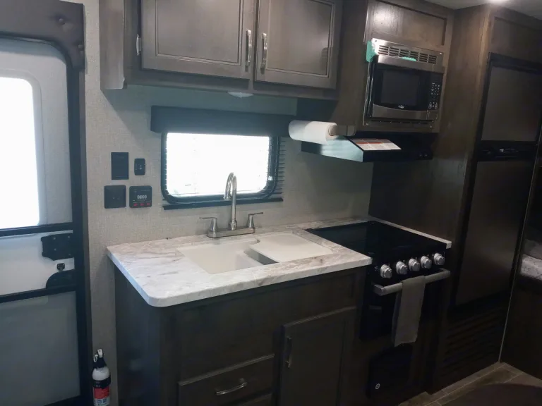 Awning and Outdoor kitchen must be secured in the event of inclement weather (wind-awning) or (rain-outdoor kitchen).