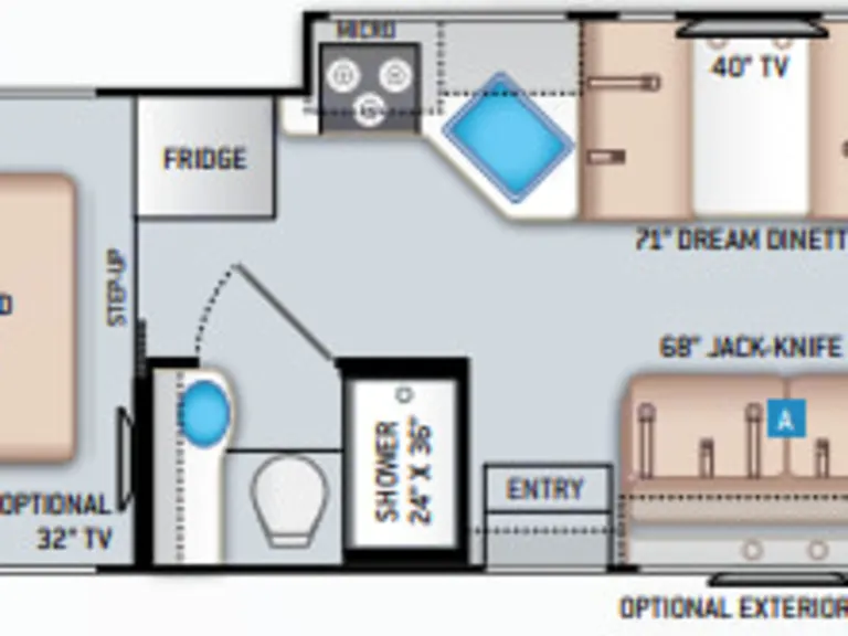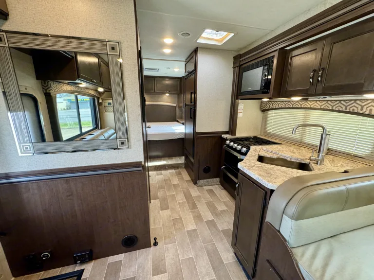 Comfort, convenience, and class is what you'll find in this Chateau Class C gas motorhome! A rear private bedroom is your place to relax at night, and you can also grab a change of clothes from the bedside closets before heading out for an afternoon hike. A large slide in the main living area gives you space to cozy up on the 68" jackknife sofa while you watch a movie on the 40" TV.