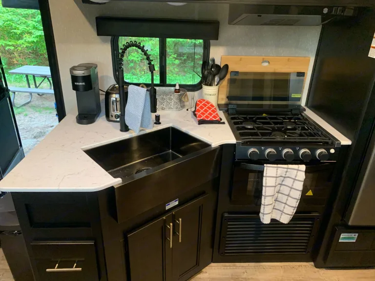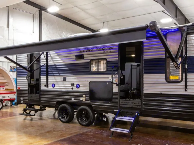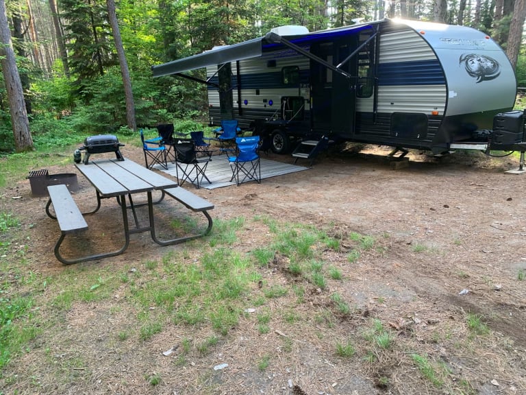 Welcome to our Home Away from Home! We hope you love it as much as we do!We invite you to come and stay in our, 2022 Forest River Grey Wolf 23DBH. This was purchased to host our own family of 5 adventures. Our comfortable trailer has a private bedroom with a queen bed. There are a set of double sized bunk beds in the rear (each comfortably sleeping 1 tall and 1 short person) and the U shaped table folds into a bed as well and is in a tip out. The kitchen has a large sink, 3 burner stove, oven & fridge/freezer. We have the kitchen stocked with all the necessary equipment you’ll need(plates, cups, bowls, cutlery, pots, pans, knives, Keurig, toaster, etc). The bathroom has a toilet, sink & shower. Our trailer also has a furnace, indoor fireplace and air conditioning to keep things comfortable. It also has an outdoor “bar” with small bar fridge, hot & cold running water & ice maker as well as an outdoor shower. We will provide camping chairs & a ground mat. We will provide RV safe toilet paper, dish soap, garbage bags, & rope/clothes pegs for a clothes line. You will just need your food, beverages, clothes & toiletries!Our trailer is available for delivery only, to make your holiday hassle free. We are located in Muskoka and have many campgrounds nearby including Arrowhead, Mikisew & Algonquin PP. We regret that at this time we are unable to welcome pets (even our own) at this time. No smoking permitted inside. We have a three night minimum.This is a great introduction to folks who are new to camping or looking for a relaxing stress free vacation.For our trailer to be fully functional, you will need a site with 30 amp service.Our family has been enjoying trailer camping for many years and we are very excited to have this comfortable trailer to share with you. Please message if you have any questions.What's includedWe view our trailer as fully stocked. We will provide toilet paper, garbage bags, paper towel, toaster, Keurig, flash lights & first aid kit. Our camp chairs & outdoor mat are included. And now includes our camping BBQ!RecommendationsThere are many campgrounds near by including Arrowhead, Mikisew, Algonquin Provinical Parks and many private camp grounds. Santa's Village campground is half hour away (or makes a great day trip with the kids!) The town of Huntsville has many lovely restaurants & grocery stores for all of your supplies.Other things to noteDelivery includes set up & is mandatory. No need to worry about towing. Pls no pets & no smoking/vaping.