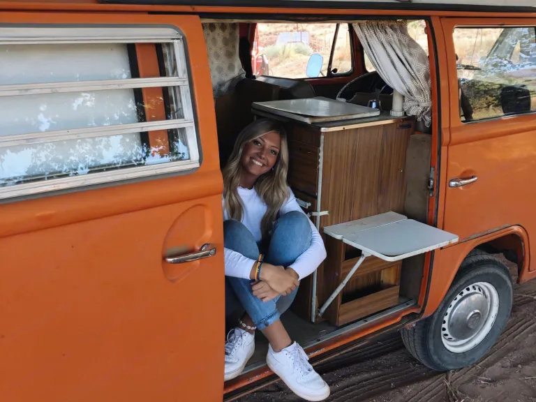 1973 transporter Westfalia. So fun to drive and great for pictures. Simply the coolest way to get to Zion National park. Great gas mileage but not fast :)