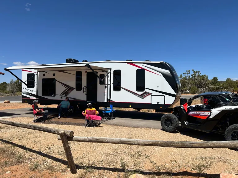 This 2021 Cruise Stryker, 38 feet long, sleeps 8 comfortably. Our trailer is "Turn KEY" ready for you, we transport (only option), set up, and have it ready for you to use at one of the many beautiful locations in Southern Utah. Whether you want to stay at a State Park, Campground, or in the Wilderness, we can accommodate. We have the hook ups necessary for a utility camp site, if that is what you prefer, or this trailer is equipped with a generator, 80 gallon water tank, 2 grey takes and a black tank, which is perfect for several days of "dry camping". We are also very unique, because we partner with Utah Off Road Tours, so you can rent a side by side (2 or 4 seater) or book a tour at the same time, (for an additional cost, contact me for pricing). This will add to the outdoor experience offered in Southern Utah. There are thousands of side by side trails throughout Southern Utah. You can enjoy the outdoor camping experience in style and go for a great side by side ride. Please give us a call if you have any questions. Utah RV Experience, LLC.What's includedWe provide sheets for 4 beds, towels for 8. The trailer has two slide outs, adding space to the living and extra bedroom. Our kitchen is fully equipped with dishes, cookware, utensils, smokeless grill, coffee maker, and a microwave. We provide 4 camp chairs, and an outside rug. Our trailer has a laminate flooring and we can provide rugs for a nicer more comfortable feel if you choose. RecommendationsThere are so many places to recommend, for example; Sand Hollow State Park, they have both hook ups and dry camping (Sand Hollow Reservoir and Sand Mountain) . Coral Pink Sand Dunes, they have a campground in the park and dry camping outside the park. Bryce Canyon State Park, Duck Creek, Cedar Mountain, Kanab, Zion National Park, and Grand Canyon. There are so many places to go. If you have an idea of what you want to do, but not sure where, give us a call, we can help. The owner has been in Southern Utah for over 25 years, and knows the area very well. Other things to noteOur trailer is not for transport, we transport and set up the trailer for you, so that all you have to do is show up and enjoy it. We have a very nice trailer and want to keep it this way, we ask that you play responsibly. This is why we ask for a $2,000.00 security deposit. Pets are welcome for an additional security deposit. No smoking.