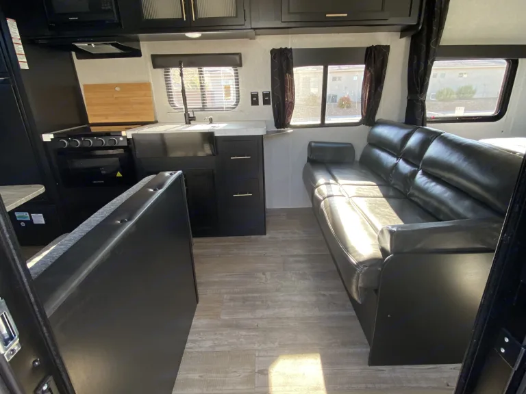 Are you an RV newbie or a seasoned professional? No matter what you are, you will find this Grey Wolf travel trailer to be both accommodating and functional for any kind of excursion you are interested in taking. The walk-around queen bed in the front gives you a comfortable place to lay your head each night while your kids or guests sleep on the booth dinette, sofa, or bunk beds and you will be so grateful to have your very own bathroom so that you can avoid trudging down to the public facilities before you've even had your morning coffee. Plus, the shower has a skylight offering you more headroom and lighting when getting cleaned up.The insulated structure will keep the warmth in and the cold out. You will also stay cool on those hot summer days with a superior A/C cooling system too. The hardest decision you will have to make is where to go! Our trailer is prepped and ready to go, you just have to step in and enjoy.Our trailer features a modern décor and sleeps 6-8 comfortably. A private walk around master bedroom with a Queen-size bed with an upgraded memory foam mattress and two closets is perfect for needed storage.The kitchen is equipped with most amenities you would have in your own home. It features a 3 burner stove, microwave, oven, large refrigerator with freezer, and pantry. The general living space also has a dinette that can seat 4. The dinette collapses into another bed capable of sleeping 1-2 more people.Other features include: motorized tongue jack, air conditioner, Bluetooth stereo, interior and exterior speakers, dishes and silverware for 8 people (or paper plates and plastic wear if you don't want to do dishes).We pride ourselves with keeping our trailer clean and modern to give our guests a comfortable stay while camping. We expect our guests to return the trailer in the same condition it was picked up in.Flexible With Times FOR Delivery OR Pick UP.Discount Offered FOR Extended Rental.What's includedOur price does include insurance so you wont need to purchase it through the website. The trailer is brand new and comes with silverware, small cutting board, pots and pans, cookie sheet, paper towel holder, spatula, can opener, big plastic spoons, and other utensils. We have also purchased a pillow top for the queen bed to make your stay more enjoyable. Bedding available upon request.