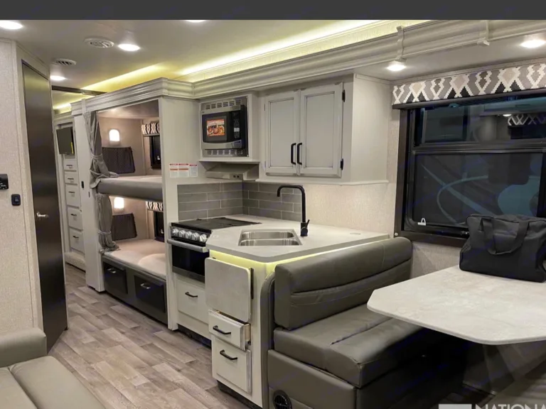 • Comfortably Sleeps 6; 1 Queen Master Bed, 1 Dinette Bed, and 1 Queen Overcab Bed