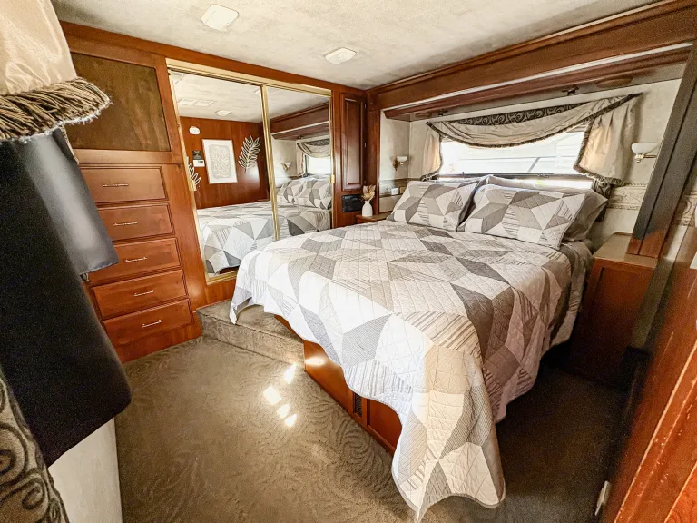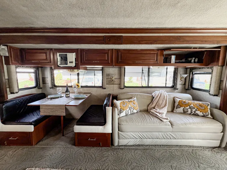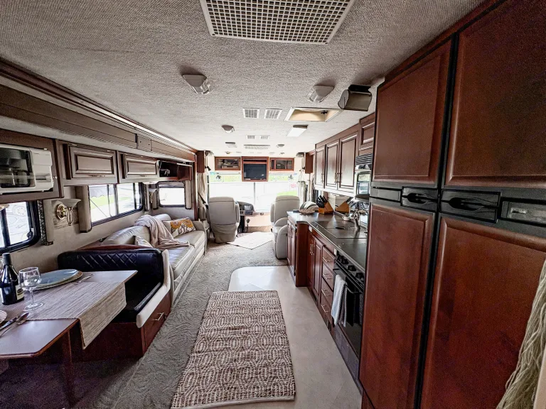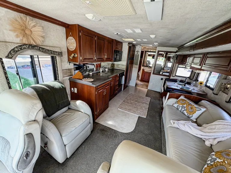Hit the road in style with this roomy Class A RV! You’ll love the comfy leather seats, real wood cabinets, and open layout that feels just like home. Since we’re proudly pet-friendly, please note that while we go above and beyond to ensure cleanliness, this coach may not be the right fit for those with severe pet sensitivities. Perfect for family getaways, road trips, or a cozy adventure anywhere the road takes you!What's included• 4 Folding Camp Chairs