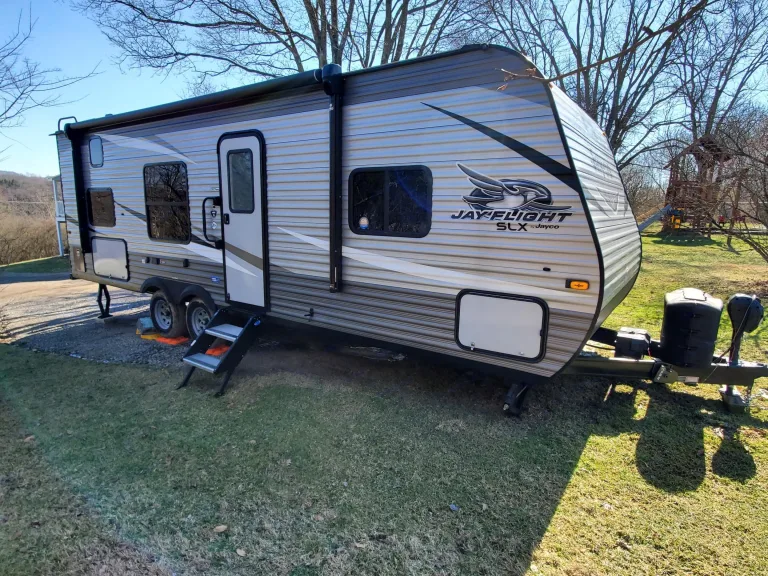 This is a like-new 2021 Jayco Jay Flight SLX 8 travel trailer 264BH. The whole family can enjoy the outdoors in this travel trailer! Everyone will start each day feeling re-charged and ready to go after sleeping on the rear corner double bunk beds and the front queen bed, plus the sofa and the booth dinette can also transform into extra sleeping spaces for any friends that want to tag along. The rear corner bathroom comes with a tub/shower that has a skylight above for natural lighting and a wood-trimmed mirror to make you feel more at home. There is also an outdoor shower available for quick clean-up. The kitchen is nicely equipped to feed a hungry family with a three-burner gas stove, microwave, and oven. In addition, you’ll find the Chil N' Stor feature on the exterior helpful so that you can enjoy a nice, cold beverage without having to go inside to get one!What's includedSwayPro weight distributing hitch