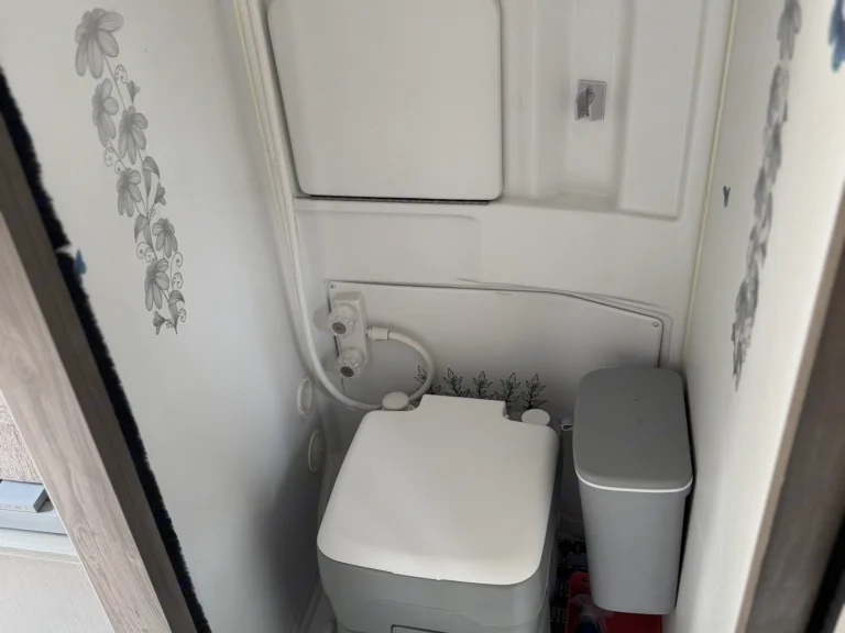 - Cassette toilet + wet bath – yes, it’s a full shower/toilet combo