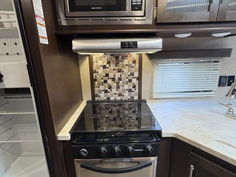 • 3-burner stove, oven, microwave, refrigerator/freezer