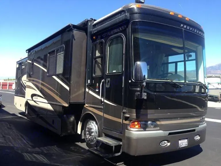 Our beautiful, forty foot, Fleetwood Providence is the way to enjoy your vacation in luxury. With three slides, the living room expands out in both directions giving you enormous amount of room. This motorhome has so much counter top space for cooking and serving, its perfect for the family or those who love to entertain. A queen bed in the back, and both sofas making into beds, this coach sleeps five very comfortably. An outside entertainment center with TV and DVD, a power overhead awning, you're ready to go have fun. With 350 horsepower and air ride suspension, you really feel like your floating on 'cloud-9'.