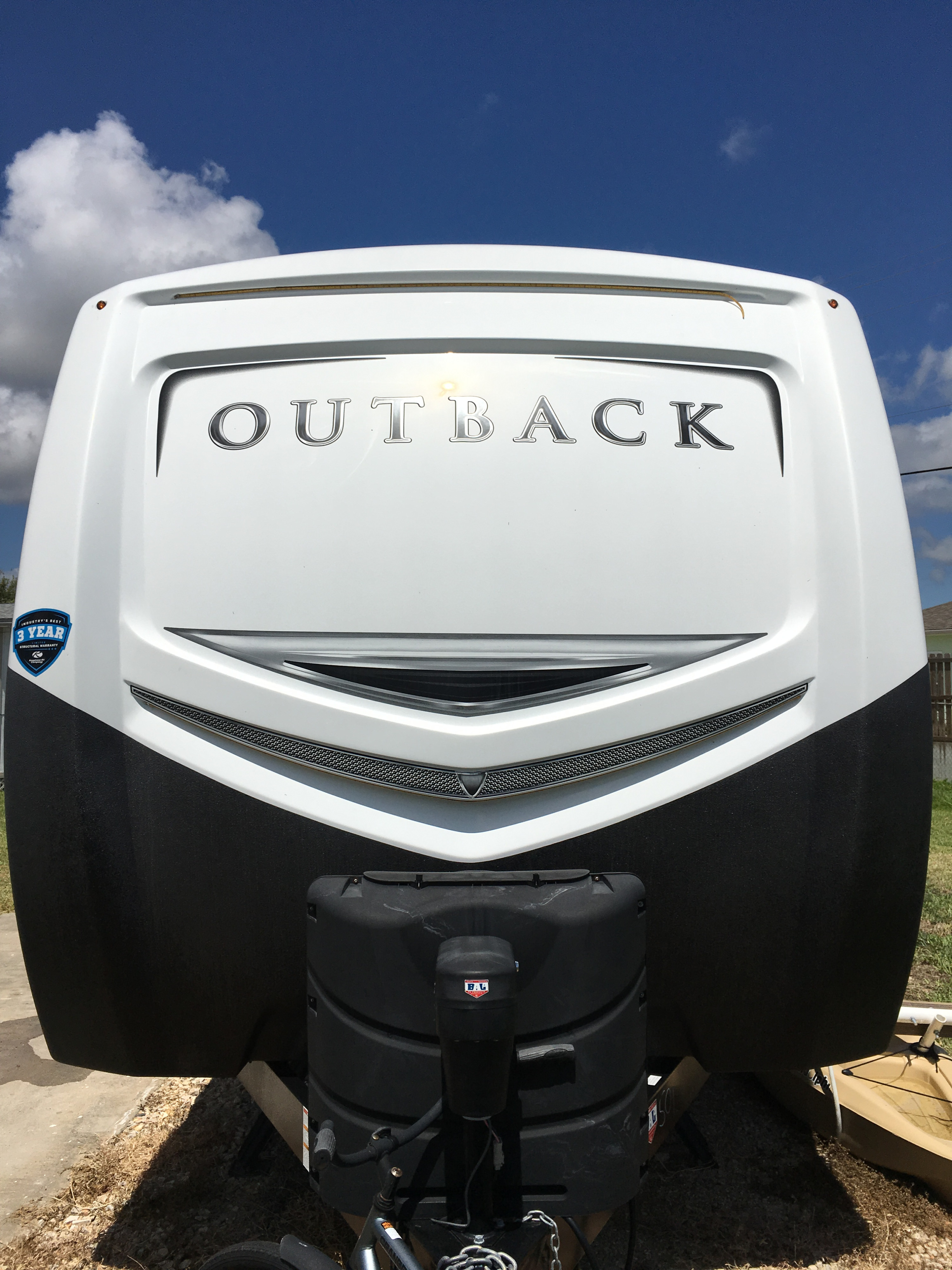 Outback is a fully loaded and furnished travel trailer. This thing always stays ready to hit the road whenever, wherever and however you wish. You will arrive at your destination before you know it once you sit back and relax in one of it’s two comfortable recliner’s that’s overlooking a 52” flatscreen television. On the side of that is a booth shaped dining table that can fit 4-6 people for some good old country on the road cooking. The booth can even turn into a small bed believe it or not. Next is the master bedroom with a queen size bed that overlooks a 42” flatscreen television. Check out the unit this thing packs. Then we have the bunkhouse that has 3 bunk beds and a couch that turns into a small bed/sofa. There are two air conditioner units on this ride, one is located in the master bedroom and the other one is in the living room area. The air conditioner in this unit blows so hard and so cold that you will have to turn it down or you will end up turning it off before it takes you back to the ice age. There’s a nice size sink displaying an island that separates the kitchen from the dining room area. A built in oven and microwave for baked goods. There’s a propane gas stove with 4 burners. There’s a refrigerator/freezer with a whole lot of room for pantry and more. It’s loaded with it’s 2bdrm & 1bath that can sleep up to 8-9 people. Last but not least, I almost forgot to tell you about the BBQ that is on the outside of the Outback. This thing has a refrigerator, stove and even a sink on the outside of it. There’s even plugs for installing a TV to watch while your under the stars. It’s got a reserve propane tank an outside shower. This Outback is known for being a ultralight unit. It’s extremely fun to use it for a road trip with the family. Thanks for listening.