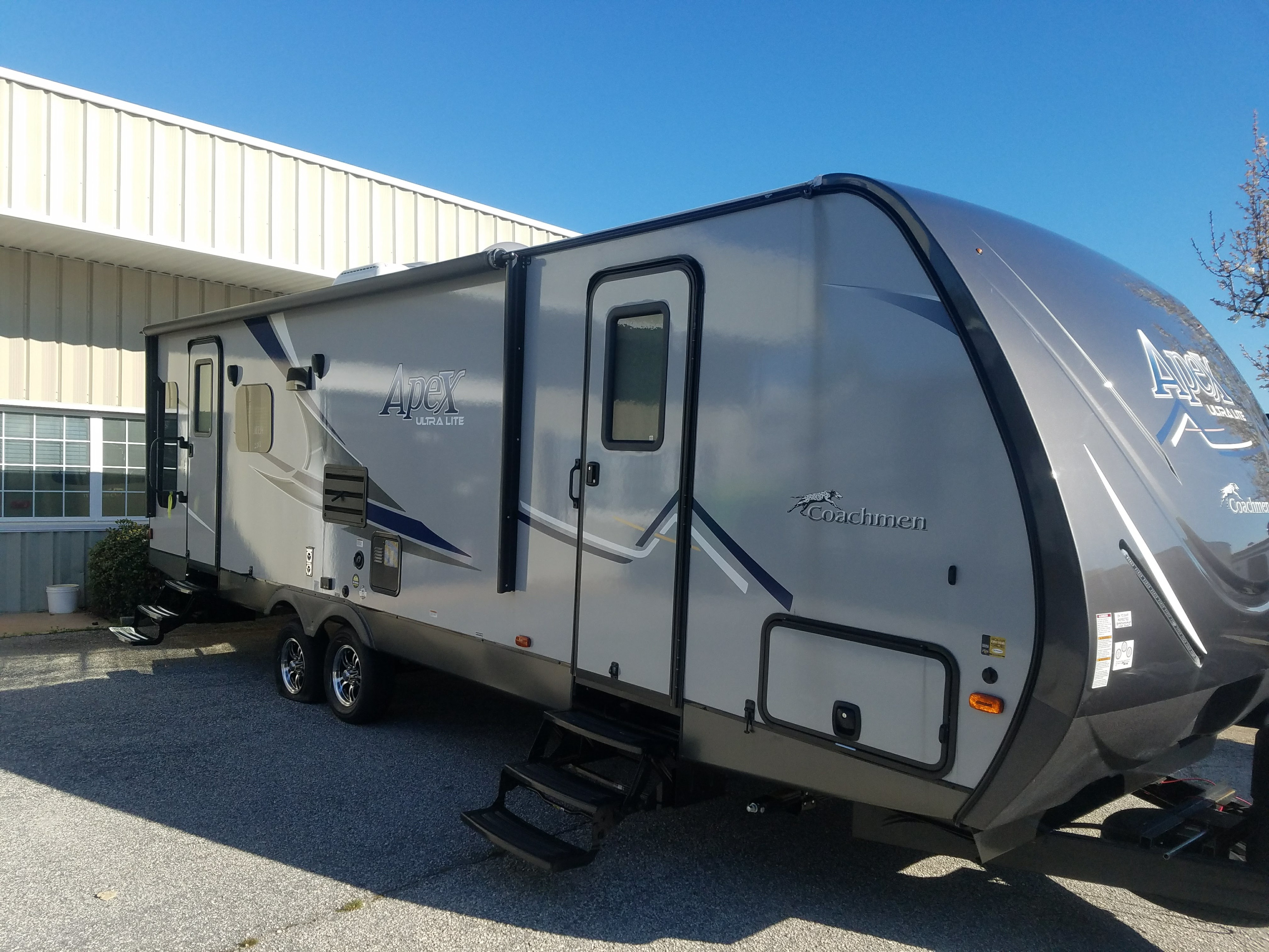Our Coachman Apex is super roomy with the super slide out. Nice roomy refrigerator, plenty of storage. The shower is nice and roomy. It is simply a pleasure to go camping in it. Our camper is super clean and we strive to always keep it that way. We do not allow pets, smoking, or cooking inside. Maximum of 2 people. Camper will not be allowed to be towed by anyone other than my husband. We deliver and set-up for an additional $150.00. Camper is not to be delivered any further than 2 hours from Spartanburg SC.