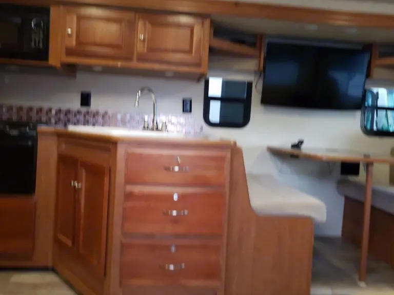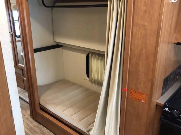 Pet friendly family camper with bunk beds for the kids! The perfect floor plan with amazingly comfortable queen size bed and bunk beds that fits sleepers 6 feet tall! Super comfy sofa folds down to sleep 2 and kitchen dinette convert to a bed. Wonderful extras such as automatic leveling jacks, large awning, backup camera, large storage capacity, optional Wifi/4G LTE, and a TV with antenna.Other things to notePets welcome!