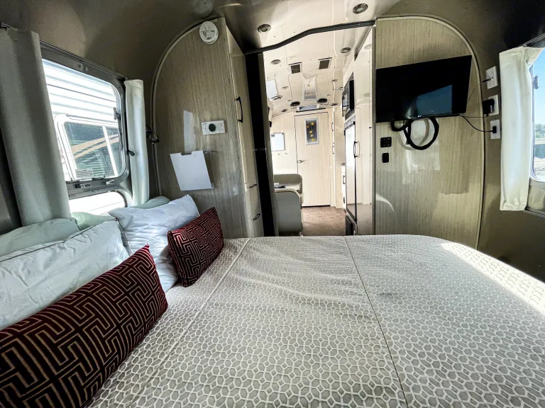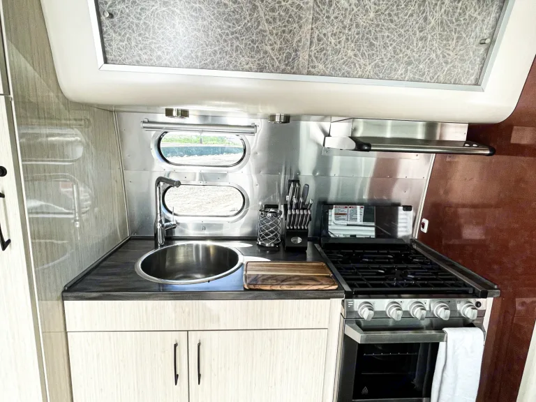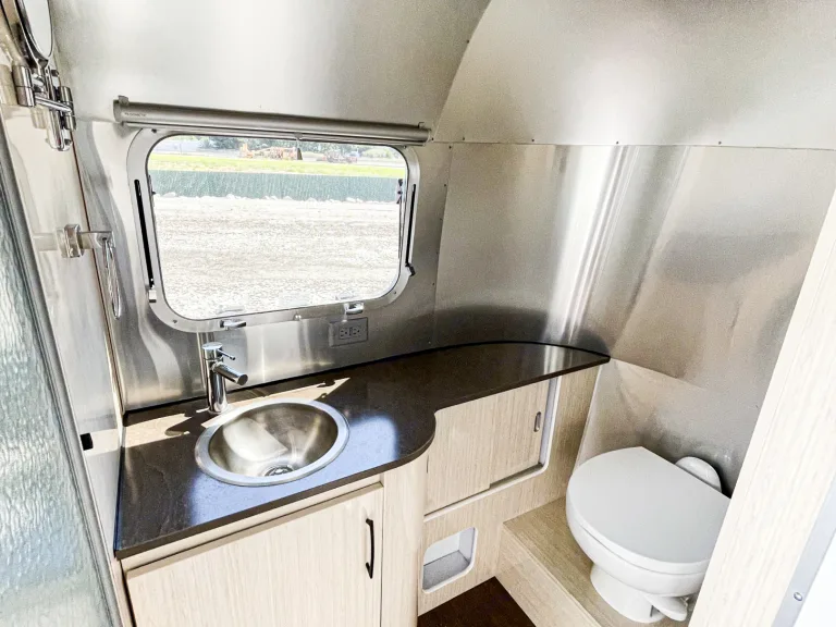 Whether you choose to lounge on the cozy sofa, enjoy a meal at the dinette, or simply take in the views, the Airstream truly becomes your home away from home.