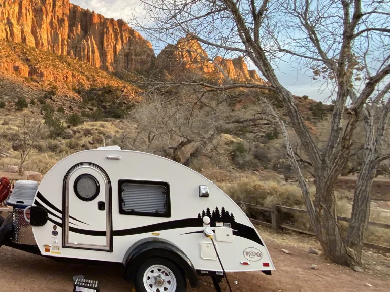 Lovely teardrop camper for an exciting getaway. Cozy queen-sized (78" by 58") bed folds up into a futon for versatility. Features air conditioning, heating, roof vent fan, kitchen with sink, Yeti cooler (for refrigeration) microwave, mini-oven, 8 gallon water capacity, water spray nozzle that works as a cold shower, propane stove (includes propane), blinds, window screen, indoor & outdoor sound system, solar panels, and propane accessory hookup. We usually sleep 2 adults + 1 kid and love to go off the grid at BLM. Great for experts and newbies! Dry weight is 1300 lbs, tongue weight of 150 lbs, connects to 2-inch hitch ball, and requires 7-pin electrical connector. The top of the hitch ball needs to be 16-18" from the ground to the top of the ball from the ground. Can be towed with a 4-cylinder car (we do this).Some appliances (AC, heat, microwave, mini-oven) work only with a shore power (120V / 30 amp) campsite connection. We have a generator available (additional cost) that will let you run the appliances off the grid. Solar power recharges the 12V during the daytime.***For Winter weather*** The trailer shouldn't be brought to an area with snow due to corrosion from road salt. Also, the trailer may not be stocked with water if you're traveling to an area where the temperature goes below freezing due to freezing of the plumbing.Here's a nice tour of the camper. Ours is the non-Boondock version which is mostly the same except that ours doesn't have a few features like the off-road wheels & wheel covers and roof rack. https://www.youtube.com/watch?v=Ziz1yfClAzQWhat's includedFresh linens, pillows, Yeti cooler (for refrigerator). Available upon request (additional fees may apply): hitch ball, hitch height adapter, stools, camping table, pots/pans, silverware, front door mat, shower hot water heater, propane heater, 2000W power generator, portable toilet, and delivery to campsite within a 50-mile radius.RecommendationsRecommended Campgrounds in the area: Bluffs/San Mateo at San Onofre, Silverwood Lake, Joshua Tree (in park or BLM), O'Neill Park, Casper Wilderness Park, Crystal Cove State Park, Point Mugu State Park, Red Rock Canyon (NV), McGill Campground, Lost Dutchman State Park (AZ), Zion.Other things to noteInterior not to be used for carrying luggage because it can damage the interior. Should not be taken offroading for anything that requires more than 5 inches of ground clearance. Outdoorsy Driver Verification must be completed before RV can be picked up, no exceptions.Pickup and dropoff times are flexible. Please send us a message to arrange the times.