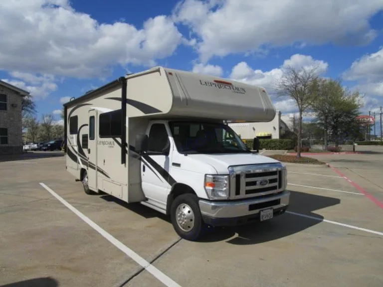 This Leprechaun Class C gas motorhome offers a private rear bedroom with a walk-around queen bed, a bunk over the cab for the kids, and furniture that doubles as sleeping accommodations for guests. The private toilet and sink with the shower just across the hall allow two people to freshen up at once. Your family will love having a sofa and a booth dinette for relaxing, eating meals, playing games, or enjoying one another's company throughout your trip.Leprechaun Class C gas motorhome by Coachmen you will enjoy "better" interior appointments, like the premium hardwood cabinet doors and drawer fronts, the one-piece thermofoil countertops, and the premium vinyl flooring. You will sleep soundly each night on the upgraded mattress, and staying clean will be easy with the premium showerhead and faucet in the bath. These models include reclining captain's seats, cruise control, and a rear backup camera so you can easily get in and out of the campground. The Leprechaun is constructed with Azdel composite sidewalls, CrossFlex PVC, polyester reinforced roof material, and vacu-bond laminated walls, roof, and floor for a durable motorhome made to last. What's included2x Camp chairs, camping table, linens, cookware, utensils. RecommendationsGuadalupe River State Park and Big Ben National Park in Texas are PERFECT places to explore with this RV... great views from the windows and very easy to park!