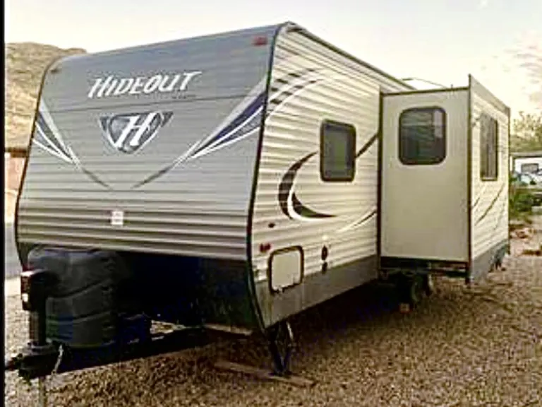 In this 2017 Keystone Hideout you will find the master bedroom conveniently located in the front of the RV with a queen sized bed, bunks in the rear have full sized beds, and there’s a table/bed in the midsection, making 8 places to sleep. There's a TV that can spin to face either the living room or the bedroom, with a mirror on the backside. You can even remove it and attach it to an outdoor attachment to watch movies outside! The dining table/sofa bed is located in the midsection where the slide out is...surrounded by comfortable cushions and storage space underneath. Major storage areas are located under the master bed and bunk area. The kitchen has a lot of counter space and features a stove with 3 oven burners. There's also an outdoor kitchen including a sink and two additional burners. Central vac system. Heating and air conditioning. Automatic Awning. Undercarriage cold weather package. What's includedFresh linens, blankets and bedspreads for the Queen bed and dinette bed. 4 Clean sleeping bags for the full size bunk beds. 8 pillows for the beds. Clean towels for the bathroom. 2 rolls of RV toilet paper included. All kitchen essentials are included (utensils, paper plates and cups, coffee mugs, pots and pans and other cooking supplies)RecommendationsSnow Canyon State Park, Sand Hollow Reservoir, Zion National Park, Bryce Canyon National Park, Canyon Lands and Lake Powell.