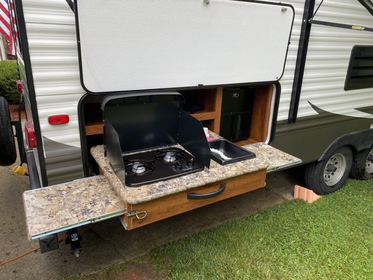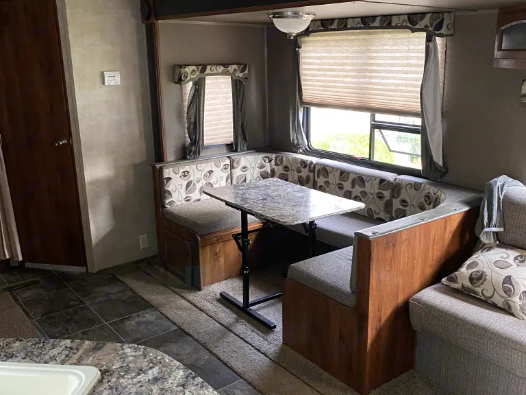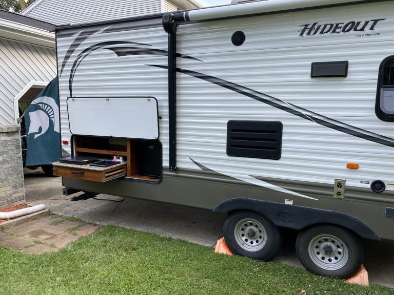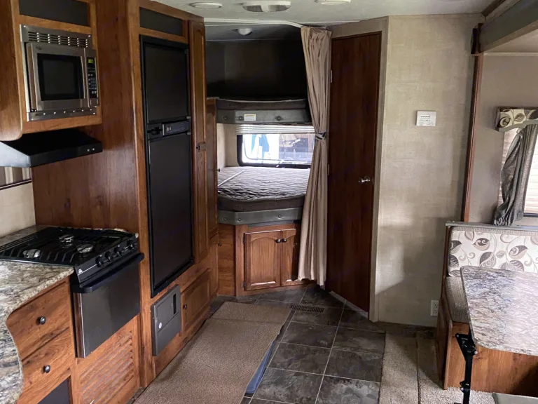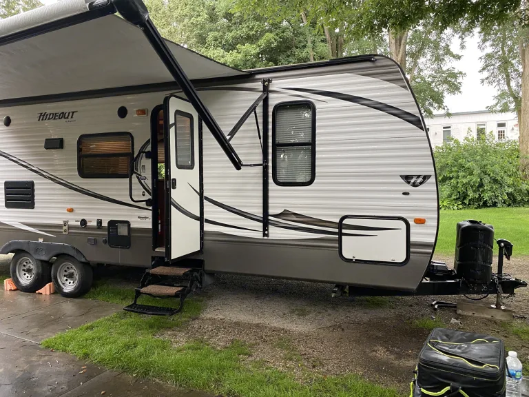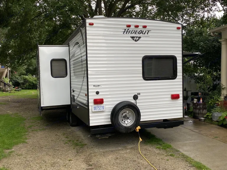 2014 Keystone Hideout - 27’ - one slide out, urn bed, bunk beds, sofa and dining table turn into sleeping areas. Outside cooking a mini refrigerator. Outdoor rug, folding table available to make the trip enjoyable. Many items for camping are already in the camper for your adventure. Great travel trailer for that overdue getaway. Camper includes many of the basics needed for camping. Clean inside and out. What's includedFour camping chairs, outdoor rug, folding table for outdoors, fresh linens, blankets and pillows.RecommendationsEnjoy a perfect camping experience. Other things to noteNo smoking