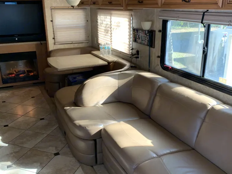 42 foot tag axle 4 slide diesel pusher. Regular and satellite TV service. Bath and a half the king size bed. Dogs are welcome!What's includedCompletely furnished with washer and dryer.RecommendationsThis RV is rentable for the state of Florida unless you make different agreement with owner. It’s easy to drive and great to stay in.
