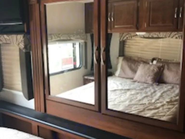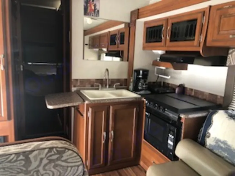 2013 Concord by Coachman. Front overhead entertainment center, slide w/couch, kitchen with microwave/convection oven, opposing dinette, split bath, rear queen bed w/opposing wardrobe slide, sleeps 4 comfortably. Outdoor shower, power awning, power leveler, backup camera and plenty of storage.