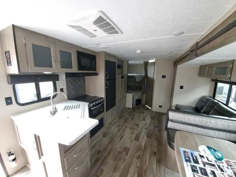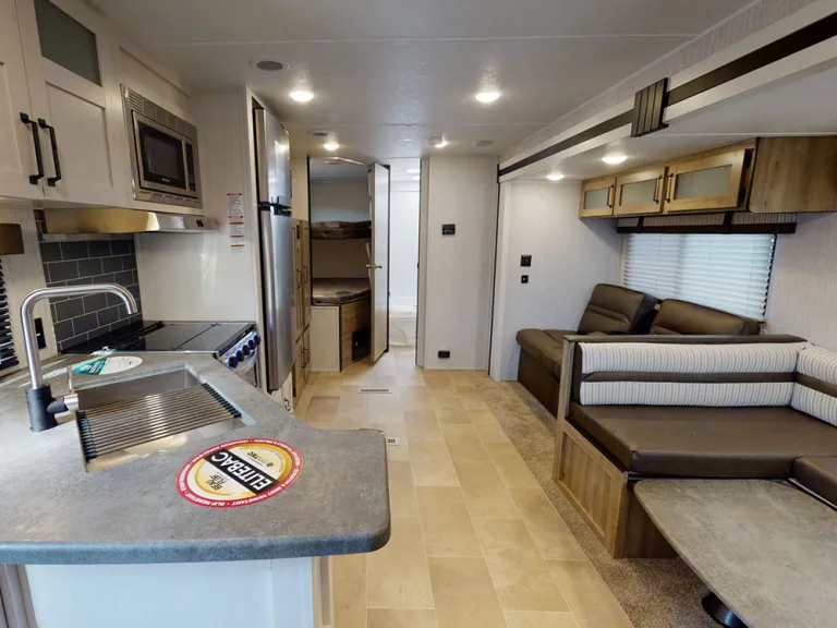 This RV is perfect for large families. This is a bunk house trailer that can sleep 8 to 9 people. This unit is 33 ft 8 inches long and weights 7600 lbs. The hitch weight is around 687 lbs. This unit can be towed behind any full size pick up. We provide a weight distribution kit with sway control with this rental. We also provide 20 foot sewer hose, 2 water hoses, 50amp to 30 amp converter, broom, trash can, floor mats and toilet paper to get you going.What's includedWe provide a weight distribution kit with sway control with this rental. We also provide 20 foot sewer hose, 2 water hoses, 50amp to 30 amp converter, broom, trash can, floor mats and toilet paper to get you going.