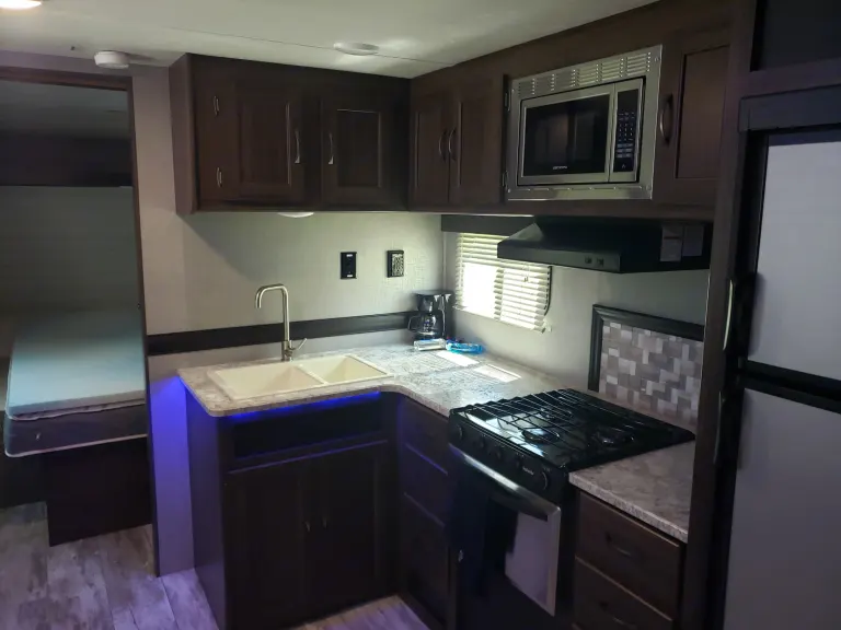 This Zinger is very clean and well kept. Plenty of room for the family including your furry friends. Jam packed with high-end components, fireplace and LED Lighting. Features both indoor and outdoor kitchens with plenty of storage space. This trailer is perfect for your ultimate road trip and next family adventure.