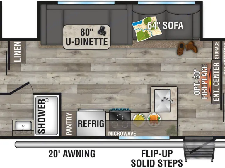 Enjoy worry free camping in style. This unit has it all including satellite tv, indoor electric fireplace for those chilly nights, out door speakers, outdoor cooktop and fridge, king size bed, 4 bunk beds, recliners with heat and massage. Has 50 amp hookup and have adaptor to go down to 30 amp.We can deliver to campsites and set up for an additional fee.