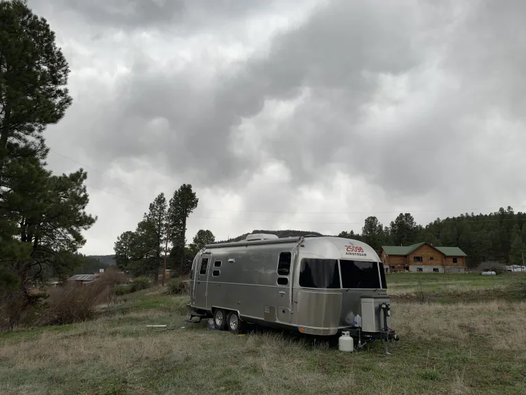 Wanda is a beautifully maintained 2013 Airstream International with every extra you can imagine. I am hosting this trailer for a Navy family that has been stationed in Japan for the next three years. It is unusual for me to have a newer trailer but honestly I fell in love with this one the second I stepped foot in it...you will too!Wanda will require at least an F-150 class vehicle to tow and comes fully equipped with a weight distribution hitch. I towed her from her home in Annapolis, Maryland to my location in New Mexico with my Silverado 3500 without incident and with no need for anti-sway. If you have a large vehicle this trailer is for you!The trailer comes fully stocked with everything you will need for a very enjoyable camping experience, including; a propane powered 3,500 watt generator, ample water storage, two flat screen televisions, an integrated video and surround sound system, large three piece bathroom that includes a separate shower room, a walk around queen been in the forward section, a gigantic dining area that easily converts to extended sleeping quarters, a rear mounted bicycle rack, rooftop Dometic air-conditioning unit controlled by a digital thermostat unit, a furnace that easily heats the trailer on the coldest night...the list goes on and on.So if vintage is not your deal then this will be!This trailer is available to tow of course on your own, however I can also kept it right where I park it on an overlook at my property that has direct view and access to the San Antonio river in La Cueva/Jemez Springs, New Mexico. I keep three trailers perched overlooking the river. Each has its own deck, patio/camp table, fire pit and access to everything the Jemez Mountains and Santa Fe National Forest has to offer. I can also tow the trailer to any number of locations that are within 100 miles of my location for a very reasonable fee. If this is what you are interested in get in touch and I'll work out the details with you.