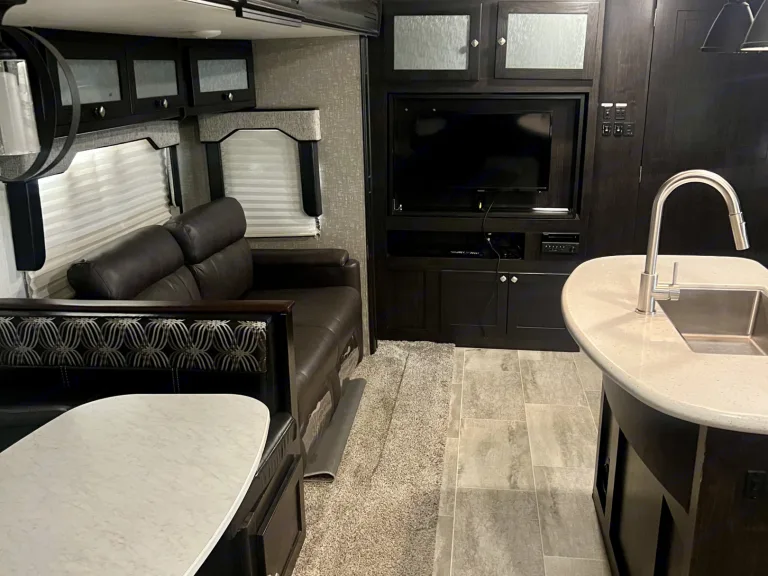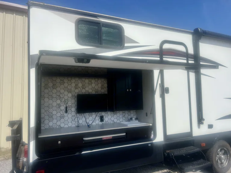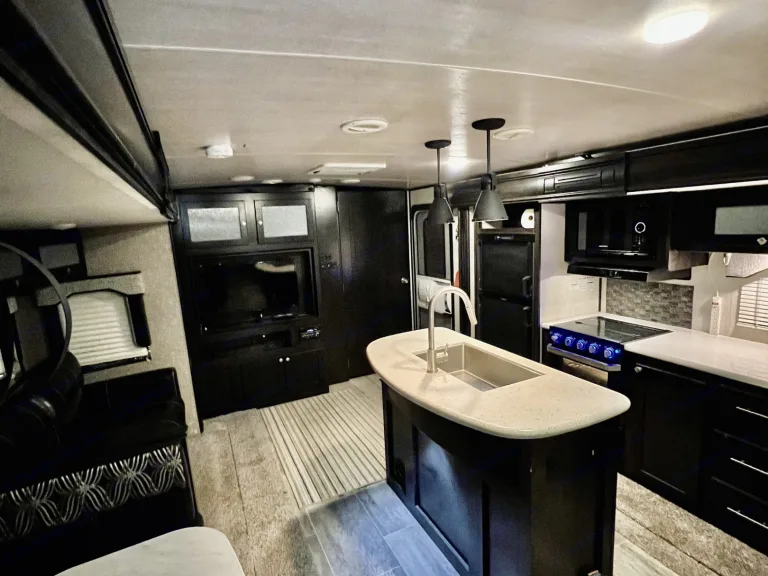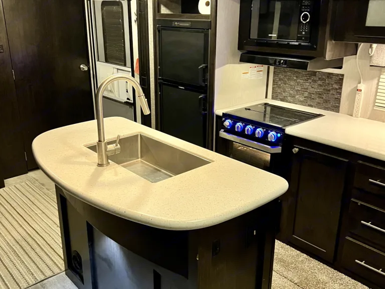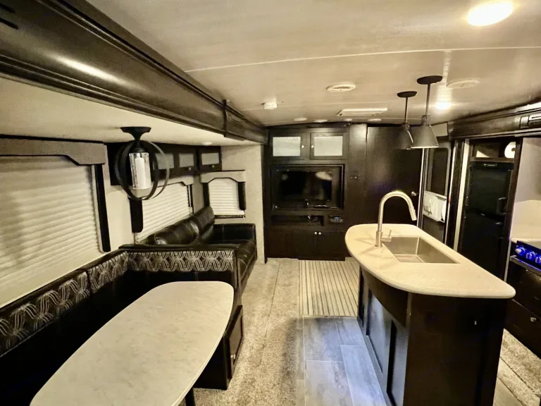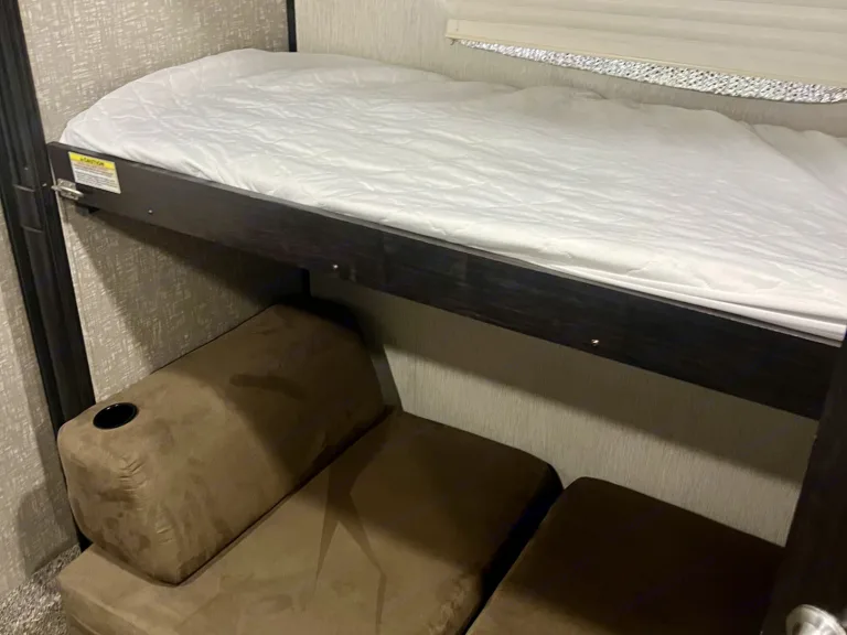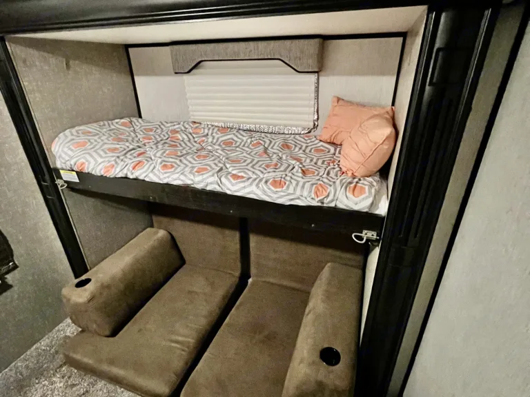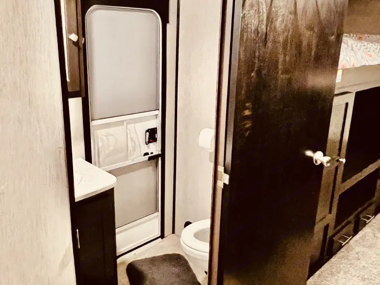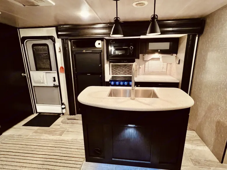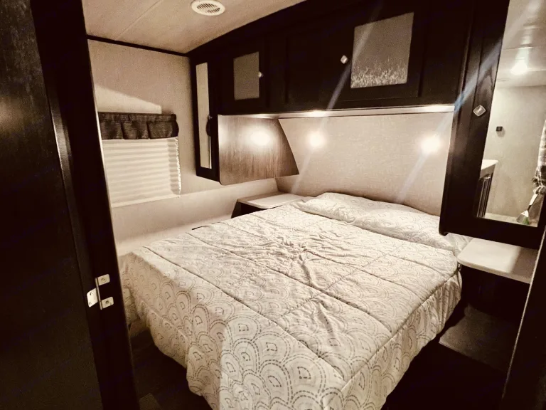 This 2019 RV is very clean and in great shape. The layout is spacious and excellent for a large family. The master room has a queen size bed with a new luxury cool breeze mattress. The couch in the living area is new and pulls out into a double bed. The rear separate bedroom has two twin bunks and a pullout sofa Sleeping a total of four. The kitchen has a large dinette that goes into a bed as well. Total RV can sleep up to 8 to 10. With our Texas heat, you will be happy to know there are two a/C units! Guaranteed to keep you cool on those hot summer nights. There is a big island in the kitchen with a double sink, microwave, gas, stove, top and oven. Plenty of storage With a pantry. Wall cabinets and extra storage under the master bed. Refridge/freezer runs off electric and propane so your perishable stay cold even while traveling. Kitchen is stocked with coffee, pot, toaster all cooking and eating utensils, plates, cups, coffee, mugs, pots, pans, toilet paper, and paper towel towels. Entertainment options include TV, DVD player, stereo with Bluetooth that play speakers on interior and exterior. The bathroom has its own second entry door to the outside. It also has a shower and tub. Outdoor kitchen has its own sink, TV, storage with grilling utensils and plenty of countertop to prep your meals.Generator is available to rent for $50 night (must be returned full of fuel) Note: security deposit will be increased. $500 for renters requesting Generator.No pets, No trail rides, no ATV parks.***Bring your own linens, pillows, towelsWhat's includedKitchen is stocked with coffee pot, toaster, all cooking, and eating utensils, plates, cups, coffee, mugs, pots, pans, toilet paper, and paper towels, cleaning supplies, and garbage bags.