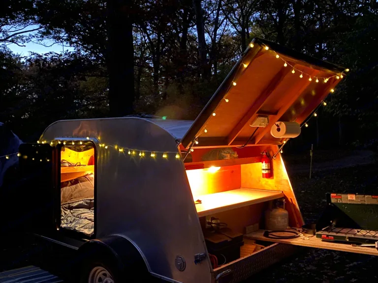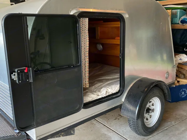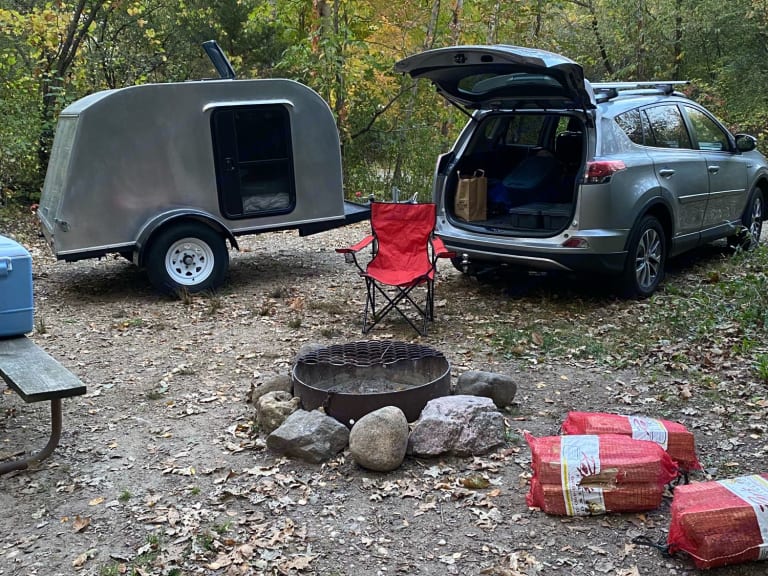 Escape quickly and easily with this lightweight teardrop camper. Perfect for any length adventure and adaptable to all seasons. This is a basic trailer, if you wanted indoor plumbing and a big screen TV you would have stayed home right?!What's includedI’m happy to provide (or exclude) as many items as you would like (or not like). Included for free or by request: clean linens and pillows, camping chairs, Coleman stove with propane tank, kitchen equipment, first aid kit, tarp awning setup, Bluetooth speaker, pop up tent for changing and solar shower bag, spare tire, tool box with various items, chock blocks.RecommendationsLet me know what kind of vehicle you would be towing with and the towing capacity. Coupler height is 16 inches and trailer has 4 pin connector.Other things to noteDepending on your camping experience/equipment I’m happy to offer any other items for you to use that I may have. Just ask! I just want you to have as good a time camping as I do.