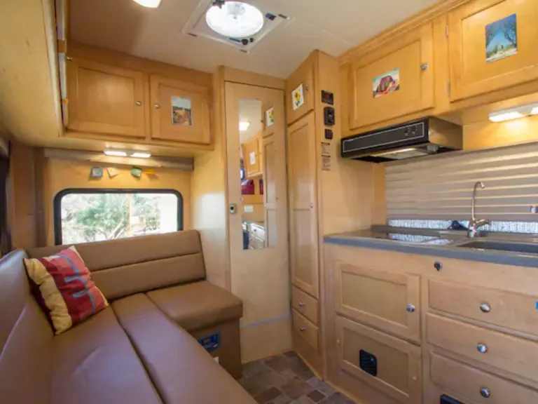 Adventure vehicle tiny home! Custom design, shower, toilet, outdoor shower, heat, two burner stove, mini-fridge. Loft bed and pull out sofa. The L sofa also has 2 seatbelts. Crawl between the cab and cabin without having to get out of the vehicle. All the luxury without being huge and cumbersome. What's includedFresh sheets