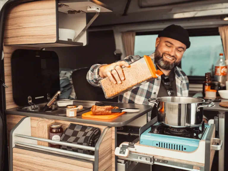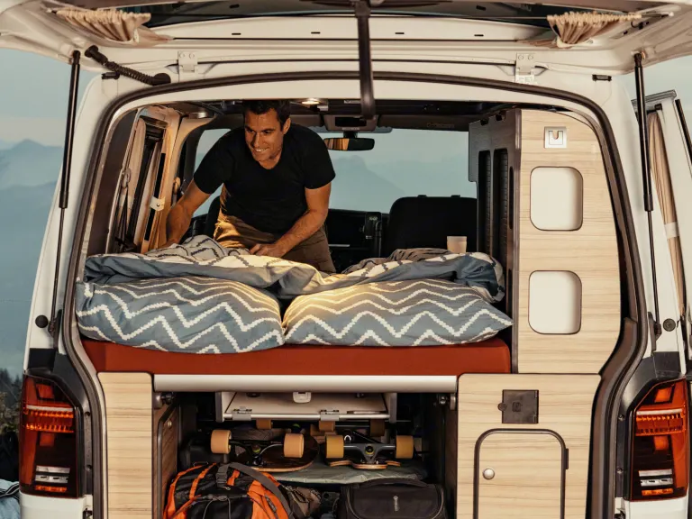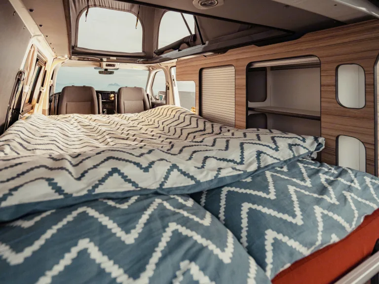 Le combi Canterbury accueille 4 personnes et propose deux espaces de couchages, un sur la banquette double dépliante et le deuxième couchage dans le toit relevable. Equipé d'une cuisine complète avec réchaud accessible depuis l'extérieur, un évier (36 litres d'eau) et un frigo de 50 litres, le van aménagé Canterbury est avant tout un van de confort. Il dispose également de beaucoup de rangements et d'un large coffre afin de ranger vos affaires et vos valises. Mais aussi doté d'un chauffage pour un départ en toute saison.Facile à manier, le Canterbury est neuf de l'année et est révisé avant chaque départ ! Sa différence avec l'Otago ? Plus de place, une personne de plus et beaucoup plus d'options !Tout le nécessaire pour cuisiner est fournis dans le van ainsi que pelle/balayette, torchon, serpière, raccord électrique, prise CEE et table et chaises de camping pour l'extérieur.