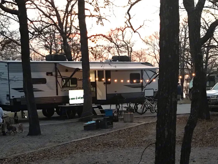 New. Fireplace, recliners, fold out couch and table converts to bed. Has it’s own ATT Wineguard. TV in Bedroom and Living area. Outdoor shower. Cookware, cups, plates and has oven and microwave.What's includedCoffee maker, toaster, linens, towels, blow dryer, blankets, travel size soap/shampoo, outdoor rug.RecommendationsBring firewood for cool nights! Let us deliver,setup and pickup so you can enjoy your getaway!Other things to noteNO PETS and NO SMOKING.