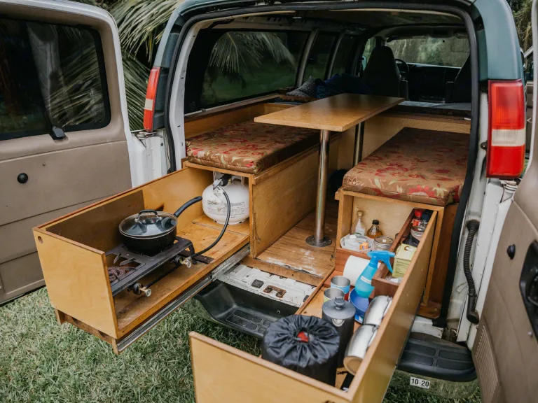 ** This van no longer has a rooftop tent due to a previous rental damage**Hands down best way to explore and truly *experience* Maui like a local is in our 2007 custom Savanna camper van AKA the Green Machine. She's truly a work of art and great for a family or solo vlamping experience. There are two sleeping areas, one is about the size of a queen and the back is smaller and more suitable for children. Both areas can be converted into a table/seating area with tons of storage underneath. Open the back doors and out slides a gas stove with pots, pans, utinsils, kettle, French press, anything you need to make a delicious meal out in the beauty of nature.Do you enjoy finding your own adventure and exploring off the beaten path? Paddle around the Pacific Ocean with whales in the distance (we have a SUP board for rent, way cheaper than tourist rentals by the beach) come back to your van, rinse off in the outdoor shower, and take a nap while you listen to the waves gently rolling in. Open a bottle of wine and have dinner with a beautiful Hawaii sunset as your backdrop.There are lots of places to legally camp over night. Happy to help anyone who has booked find a place. I would suggest making sure you book your arrangements *ahead* of time.Included with your rental: