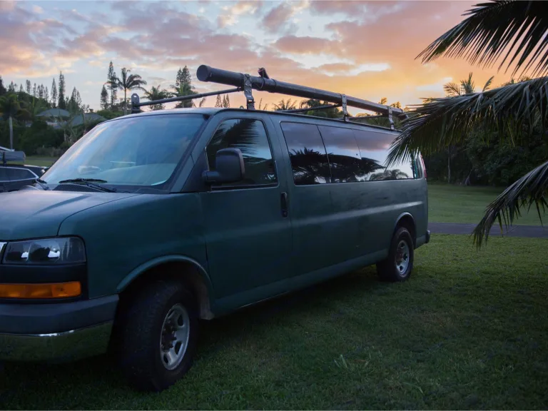 deluxe beach set up (umbrella, medium and large snorkel set (goggles, snorkel, and fins)Pick up/drop off is typically at the Kahului airport. Check in is at 3pm and check out is at 11am. There is NO smoking in the Green Machine, you *will* lose your deposit.What's includedfresh linens, 2 camping chairs, 1 hammock, 3 gallons drinking water, 4 towels, first aid kit, 2 fans, 1 ice chestRecommendationsPlease make sure that you arrange legal camping reservation before arriving to Maui. Reservations fill up quick and it is not legal to park just anywhere. Other things to noteYou can NOT park on the side of the Hana Highway to jump into waterfalls. You will get ticketed, lose your deposit, and of course be responsible for any tickets/fines.No driving to Hana, the back road to hana, back way to Lahaina, or up to the crater. Cell reception is very limited in these areas and tow trucks will not go over there.