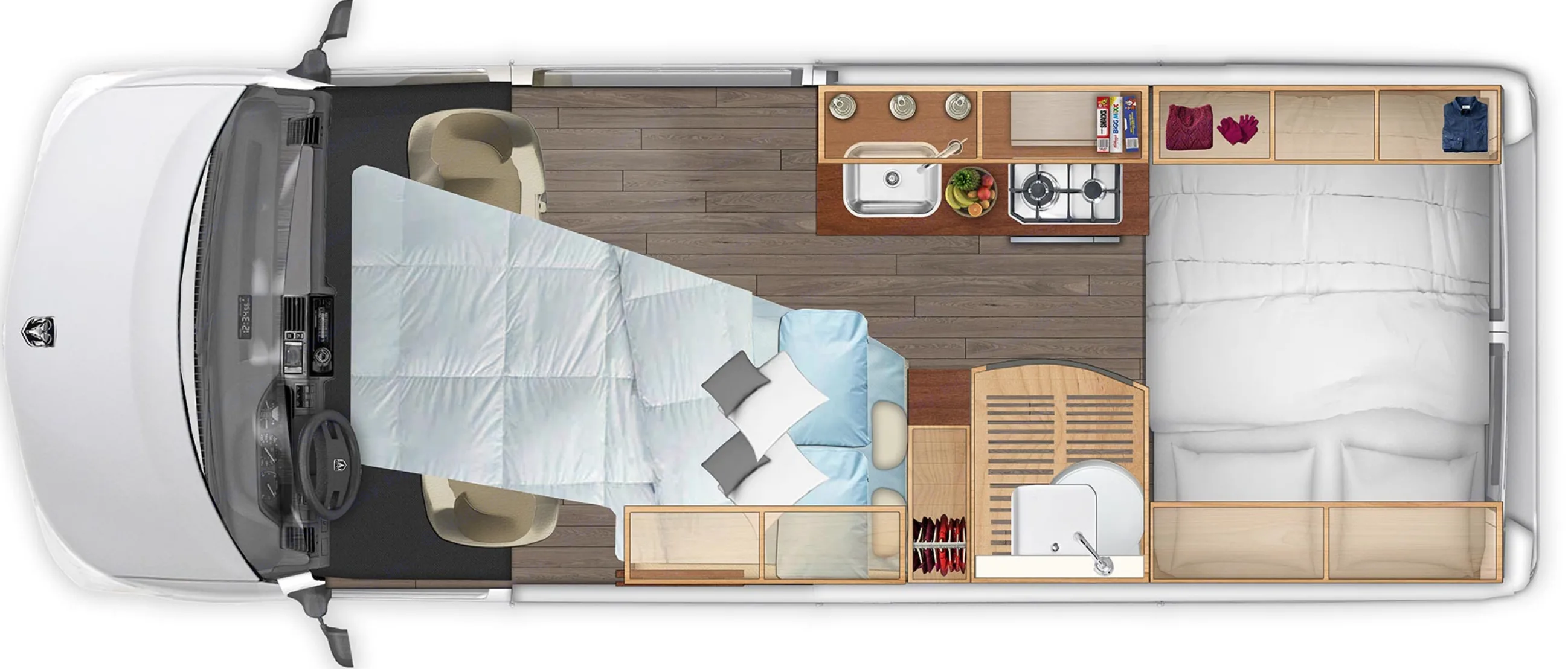 Since Maui Wowie has been in our fleet for 7 years now, it does show a bit of wear and tear for its age and is priced accordingly, but it still remains one of our most popular campervans for cruising around the island. Also note that many of our Maui campervans have some scrapes to the passenger side of the van due to customers scraping it on the road to Hana.