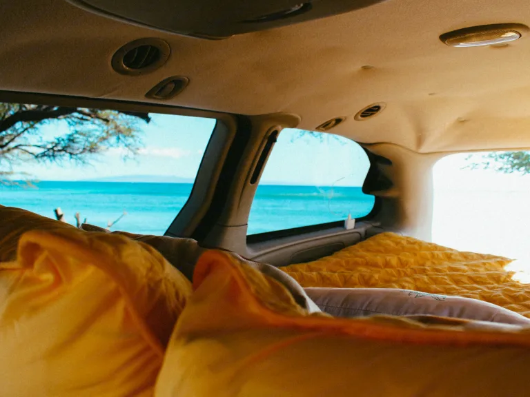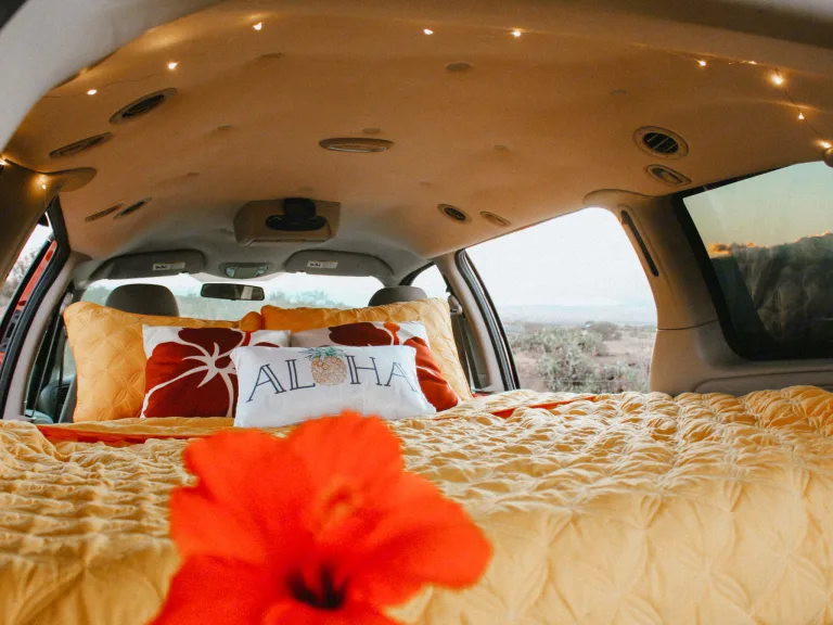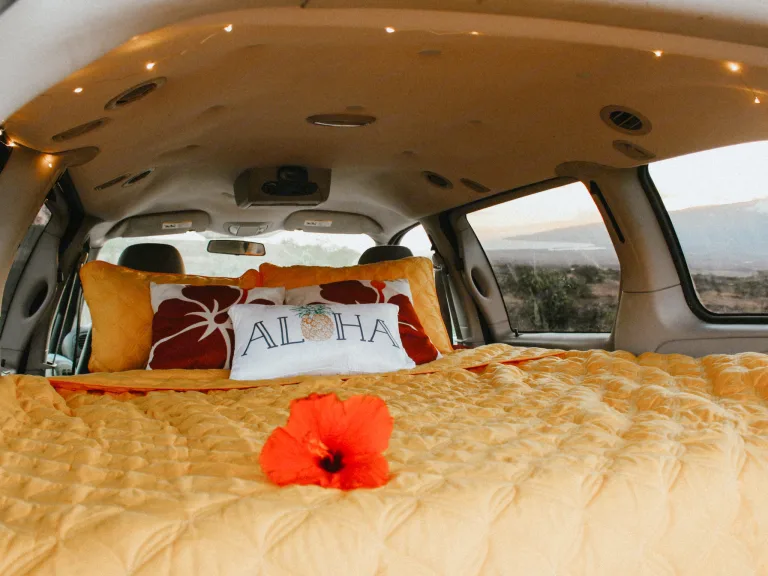Come experience Maui in this 2007 Dodge Grand Caravan! She's a well-loved beauty with the charm and Aloha you're looking for! She comes stocked with all the essentials you need for your unforgettable glamping experience in paradise.The Red Hibiscus is a perfect van for couples or solo travelers. She comes equipped with a cozy queen memory-foam mattress and fresh linens for a good nights rest. In the morning, wake up and make eggs and tea with her kitchen supplies, and propane burner, while you watch the sunrise. When the surf is right, unpack the beach chairs, umbrella and snorkels for an adventurous day in the sand. Then, catch the sunset, and take in the beauty of Hawaii. On rainy days or long evenings, pop in a DVD, and turn on the A/C to relax. At night, rest easy and breezy, (without worrying about bugs!) by using our window screens for the perfect cross wind.Blend in with this stealth camper van that is easy to drive. The Red Hibiscus is truly an affordable and authentic way to experience Hawaii like a local. What's includedGeneral: