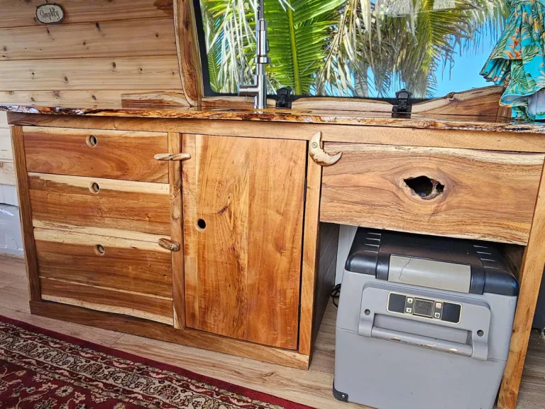After building my first camper van (Kozy Koa) and living in that while traveling around the island for about 8 months I decided I loved the freedom of living the van life, but I needed to be able to stand up in my van. So I bought a Mercedes Sprinter van that I now live in full time and started renting out Kozy Koa. I loved hearing the stories from my renters about how they loved the van and how much of the island they were able to see. I decided to build another van and we now have added Lil Honu which was designed as a rental so it has some really nice upgrades. I am currently building another van which should be available by November. At least that's the goal. It will have all of the upgrades that Lil Honu has and then some. She's called Da Dolphin.