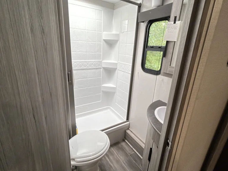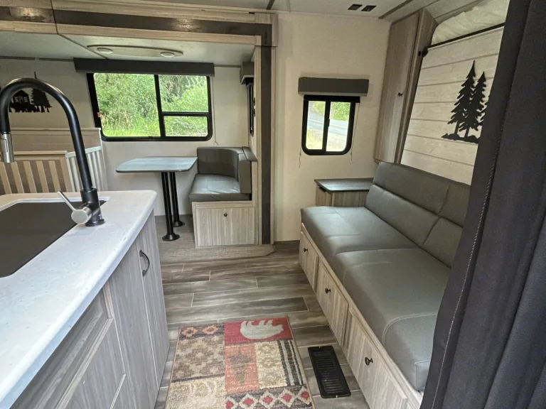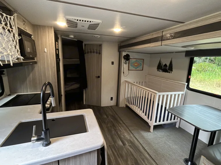Perfect for family adventures, this 2023 travel trailer sleeps 6 with bunks!