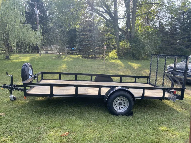 14x6 Utility Trailer comes with tie down points, brand new decking, it’s a single 3500Ib axle with 2900Ib capacity, has a ramp making it easy to get stuff on and offA 2” ball hitch and a 5 pin connection are required to pull this trailer. Can supply a 5 pin adapter for $10 extra per reservation period. Can also supply a 2” ball hitch for a 2” hitch receiver for $10 extra per reservation period.